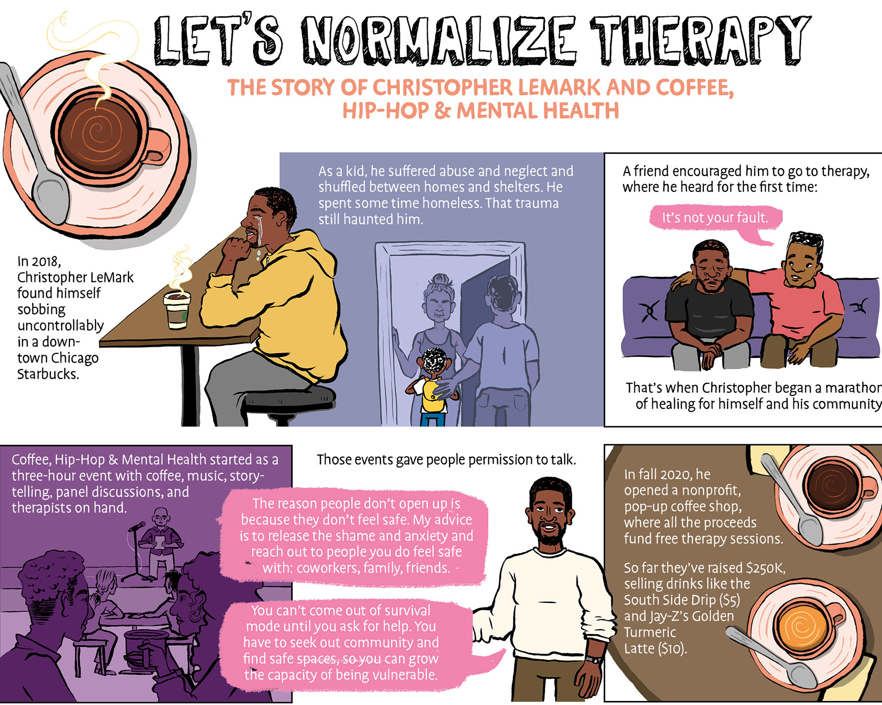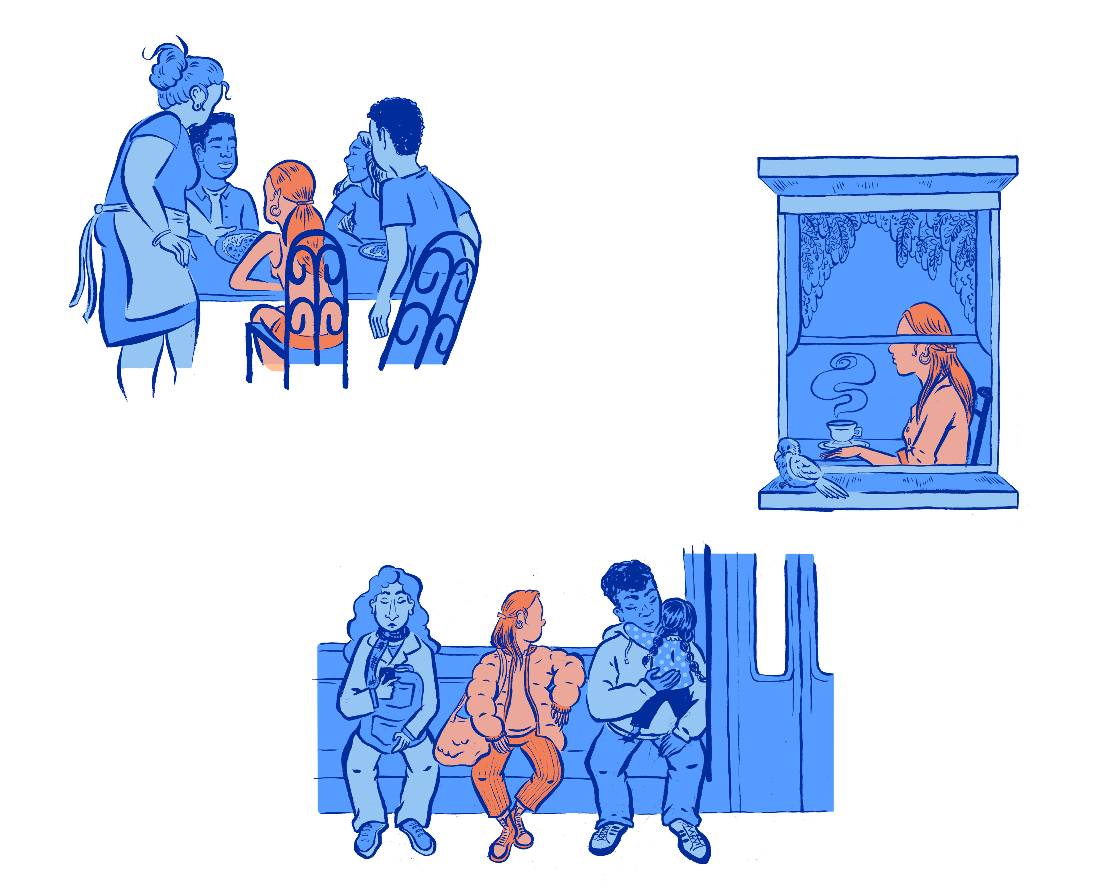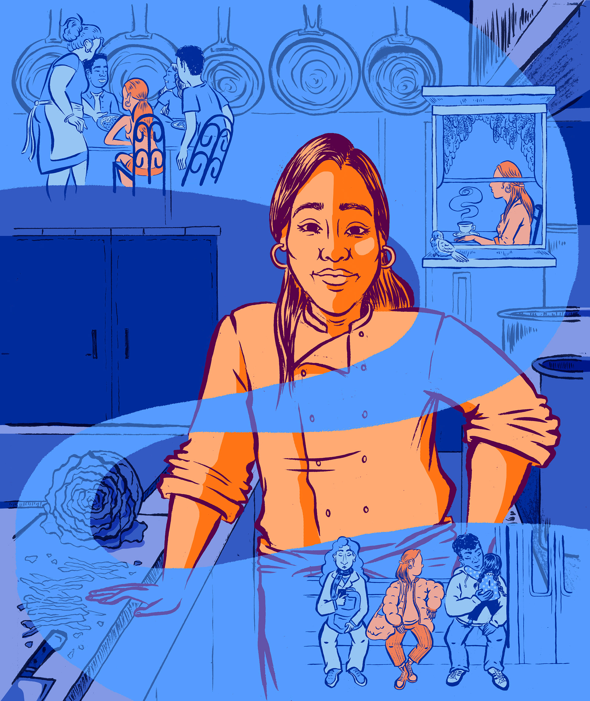 Editorial illustration and spots commissioned by Plate Magazine for an article about a culinary program helping asylum seekers gain training and employment in the restaurant industry.